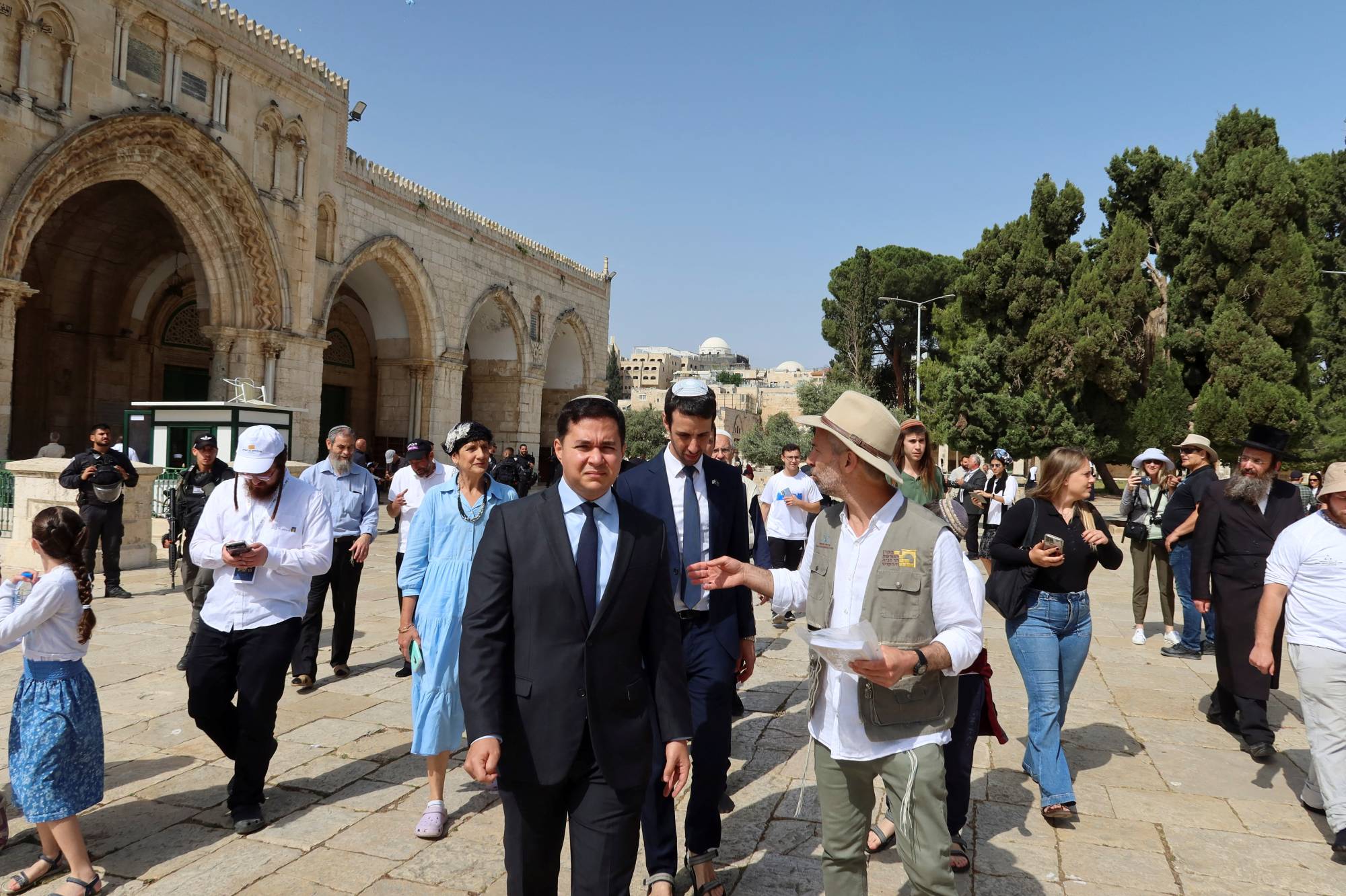 أعضاء في «الكنيست» الإسرائيلي يجولون في مجمع المسجد الأقصى الخميس (رويترز)