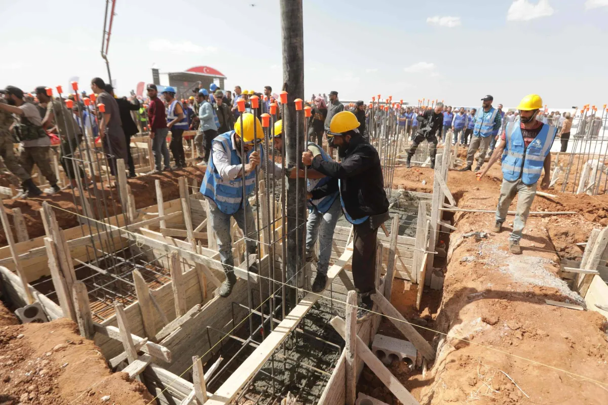 ولفت إردوغان، في مقابلة تلفزيونية ليل الخميس - الجمعة، إلى قيام وزير الداخلية التركي، سليمان صويلو، بوضع حجر الأساس لقرية سكنية تحوي 240 ألف منزل بمدينة جرابلس في محافظة حلب، الواقعة ضمن ما يسمى منطقة «درع الفرات» الخاضعة لسيطرة القوات التركية، الأربعاء، والتي يتم إنشاؤها بتمويل من الصندوق القطري للتنمية، قائلاً: «ومع هذا المشروع نكون قد بدأنا بتأسيس البنية التحتية للعودة الطوعية للسوريين إلى تلك المناطق».