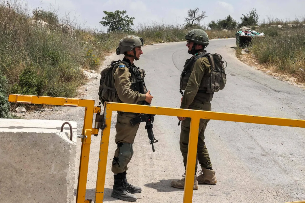 جنديان إسرائيليان يقفان على حاجز في الضفة الغربية (أ.ف.ب)