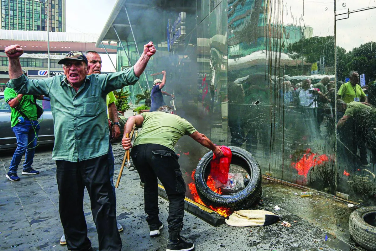 لبنانيون غاضبون خلال احتجاج يطالبون فيه بودائعهم في المصارف الخميس (د.ب.أ)