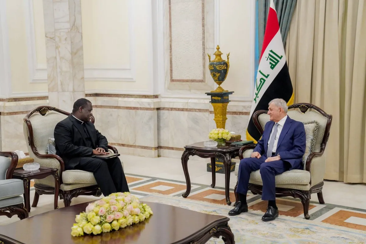 صورة وزعتها الرئاسة العراقية لاجتماع رشيد مع القائم بأعمال سفارة الفاتيكان في بغداد