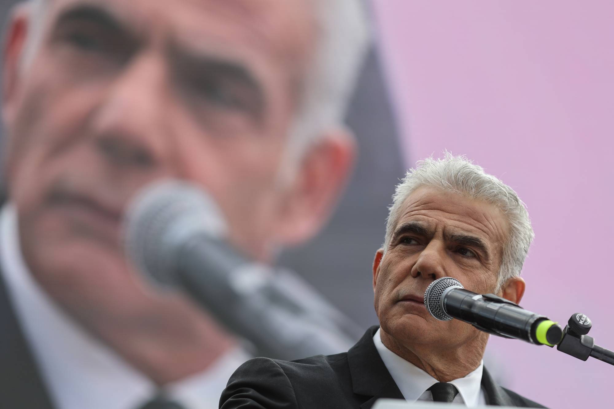 زعيم المعارضة يائير لبيد يحدث خلال احتجاج ضد الحكومة (أرشيف - أ.ف.ب)