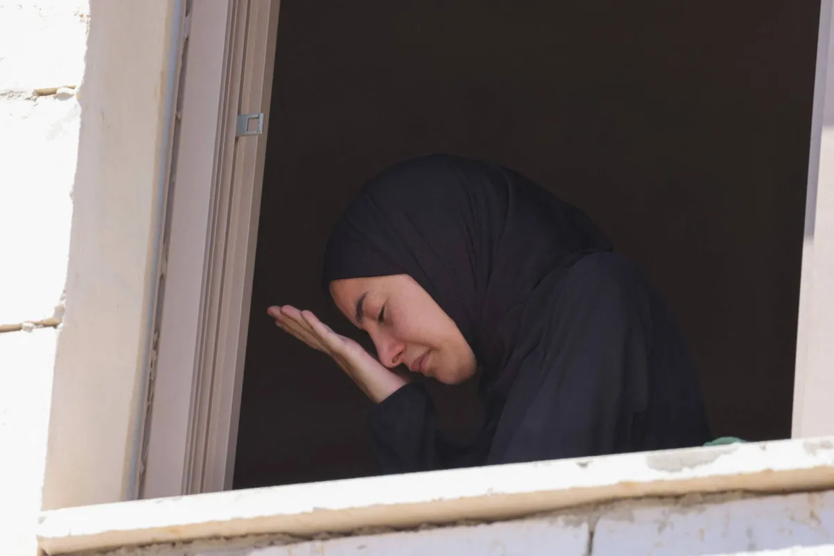 فلسطينية تبكي خلال تشييع قصي معطان (19 عاماً) في قرية برقة، بالضفة الغربية، السبت (أ.ف.ب)