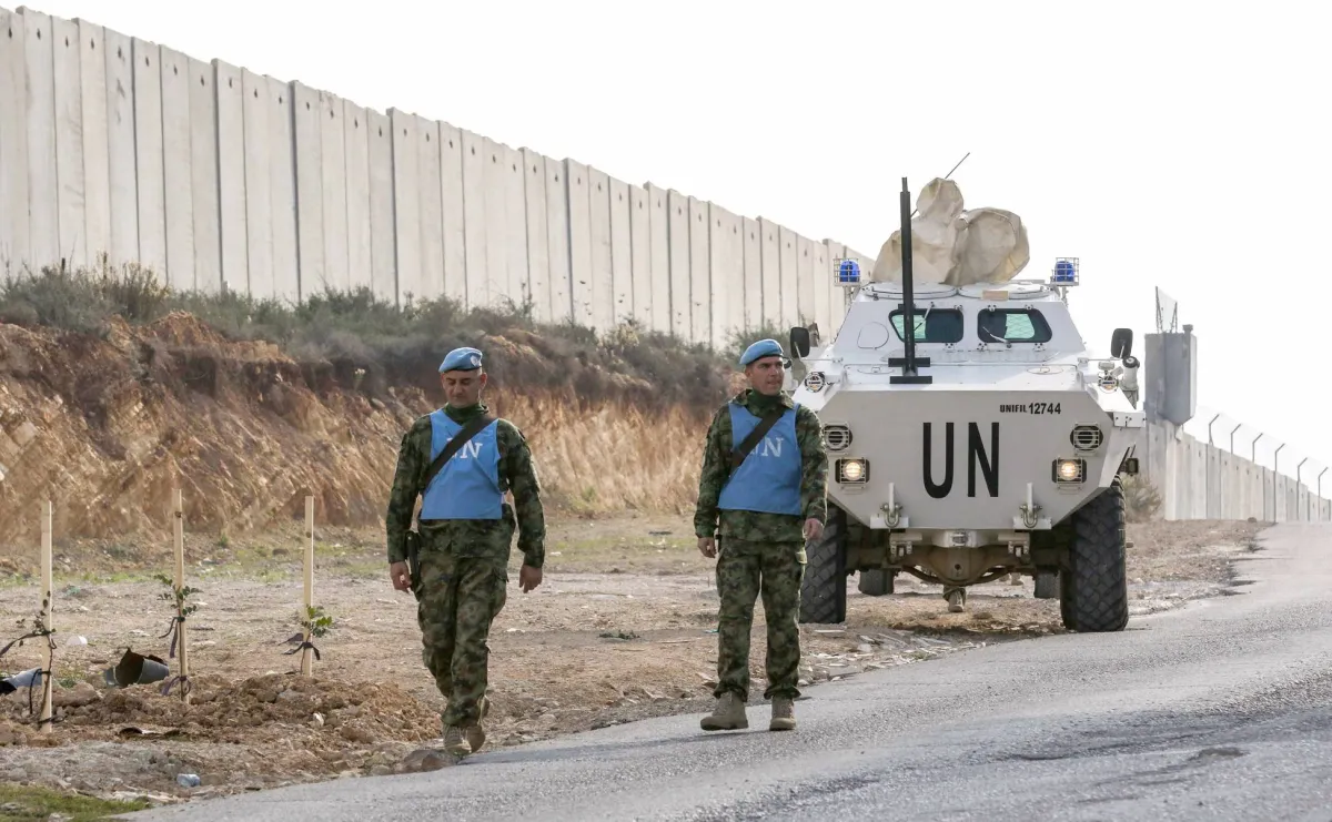 دورية للقوات الدولية عند الجدار الفاصل بين لبنان وإسرائيل (أ.ف.ب)