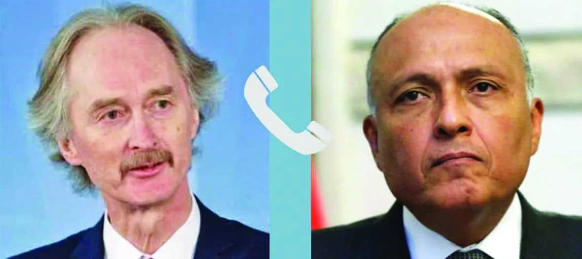 تلقى وزير الخارجية المصري سامح شكري، اليوم الأحد، اتصالاً هاتفياً، من المبعوث الأممي الخاص بسوريا غير بيدرسون. وجرى بحث مخرجات اجتماع لجنة الاتصال الوزارية العربية المعنية بسوريا، التي انعقدت بالقاهرة، الثلاثاء الماضي.