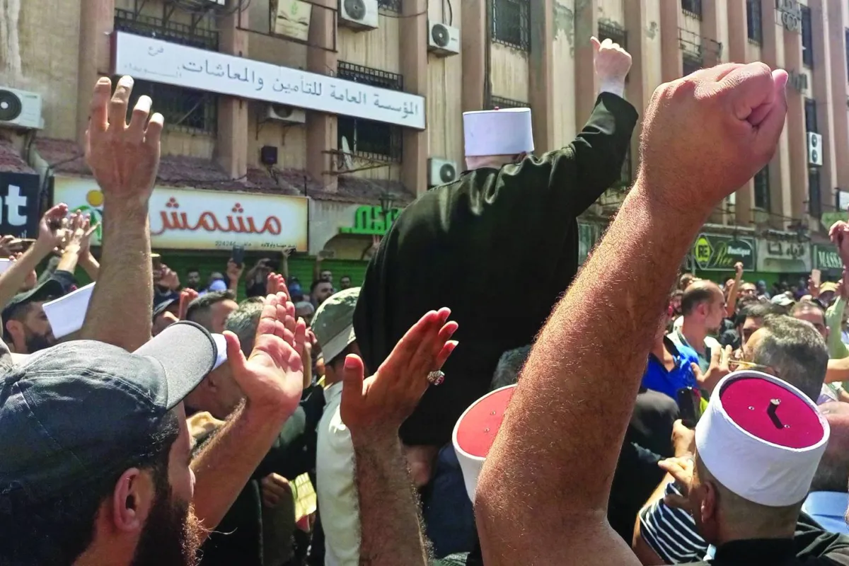 رجال دين دروز يشاركون في احتجاجات السويداء جنوب سوريا الاثنين (موقع السويداء 24 - أ.ف.ب)