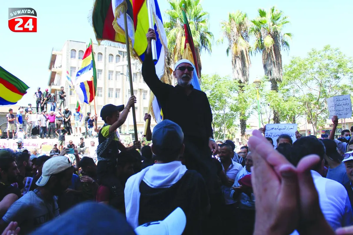 شهدت محافظة السويداء جنوب سوريا، أمس، إضراباً عاماً، وإغلاق الدوائر الحكومية والحزبية مع دخول الاحتجاجات أسبوعها الثاني، بينما صعّد المحتجون في المطالب التي بدأت بتحسين الأوضاع المعيشية، إلى المطالبة برحيل النظام، وتطبيق القرار الأممي 2254، ووصلت أمس إلى مطالب جديدة تتعلق بالاتفاقات التي وقعتها الحكومة السورية خلال السنوات الماضية مع الحليفين الروسي والإيراني.