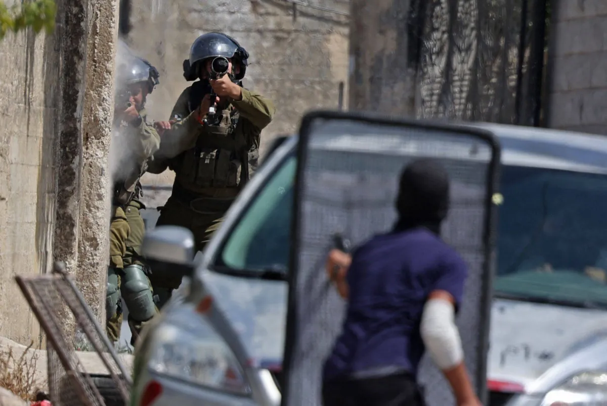 قوات الأمن الإسرائيلية تحاول تفريق احتجاجات في كفر قدوم بالضفة الغربية اليوم الجمعة (أ.ف.ب)