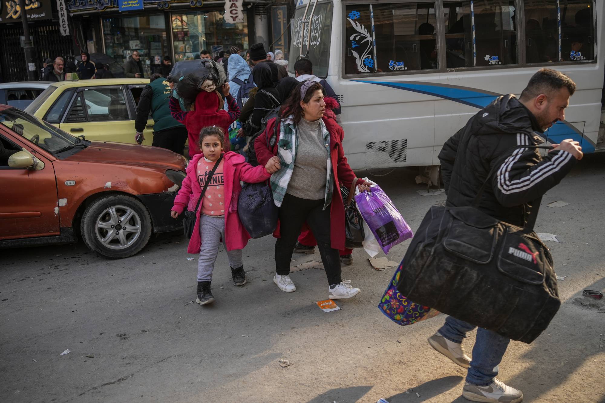 أشخاص يحملون أمتعتهم ويهربون من حلب يوم 7 يناير 2026 (إ.ب.أ)