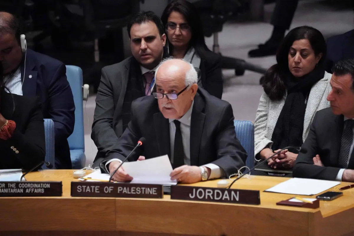 قال المندوب الفلسطيني، بحسب ترجمة لكلمته: «لا يوجد غطاء سياسي قد يعفي إسرائيل من مسؤوليتها بحق الفلسطينيين الذين تقتلهم».