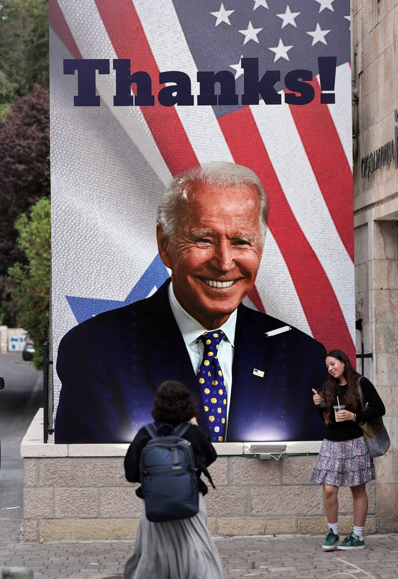 وحاول بايدن إظهار بعض التوازن ما بين مساندته الصارمة والحاسمة لإسرائيل، وإظهار بعض التعاطف مع الفلسطينيين، حيث قال: «لقد تحدثت مع رئيس السلطة الفلسطينية (محمود) عباس، وأكدت من جديد أن الولايات المتحدة لا تزال ملتزمة تجاه الشعب الفلسطيني وحقه في الكرامة وتقرير المصير، ومثل الكثيرين أشعر بالحزن الشديد بسبب الخسائر المأساوية في أرواح الفلسطينيين بما في ذلك الانفجار الذي وقع في المستشفى»، في إشارة إلى المستشفى المعمداني في غزة الذي تسبب انفجار في باحته باستشهاد أو إصابة مئات الأشخاص.