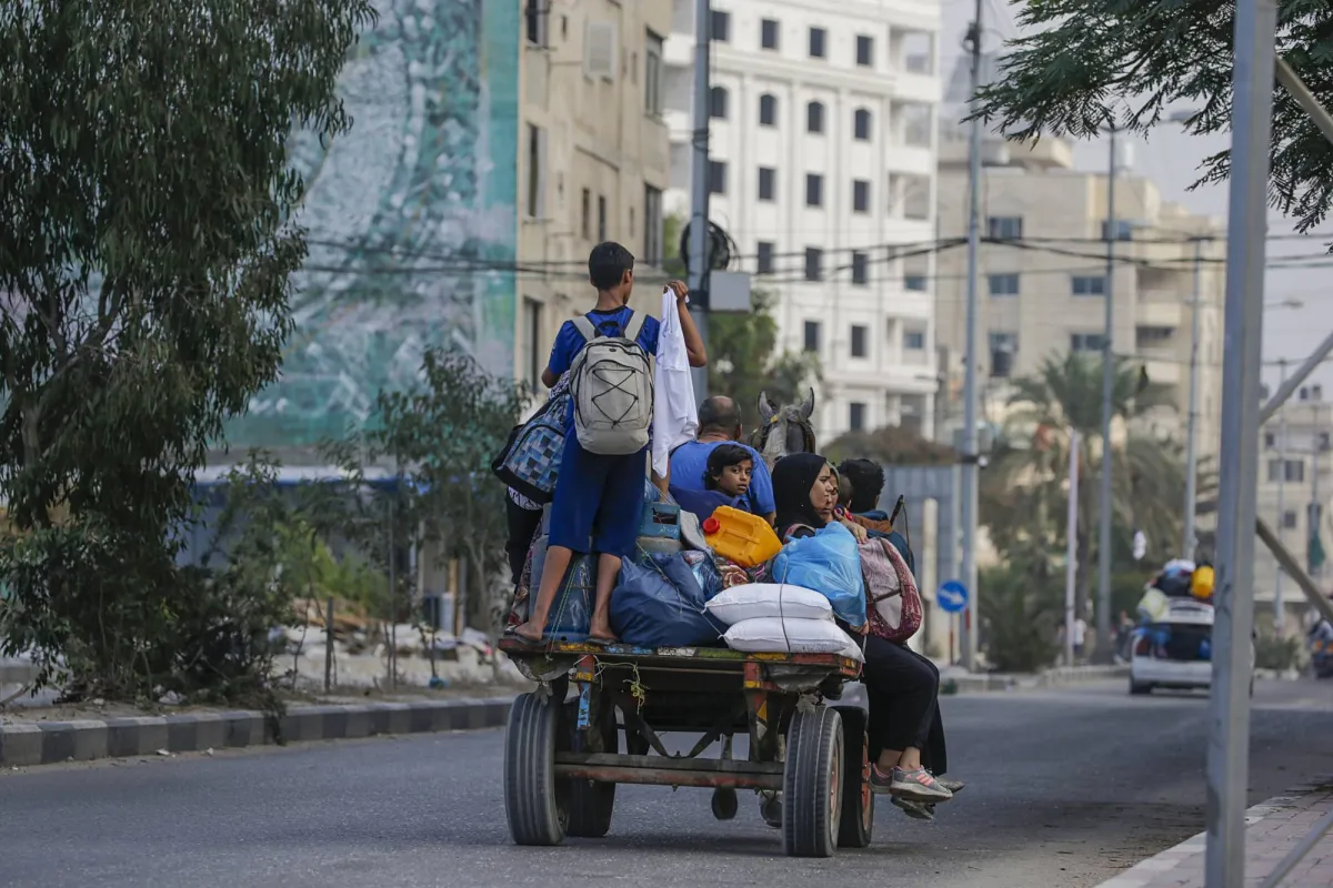 نازحون من مدينة غزة يوم الخميس (إ.ب.أ)