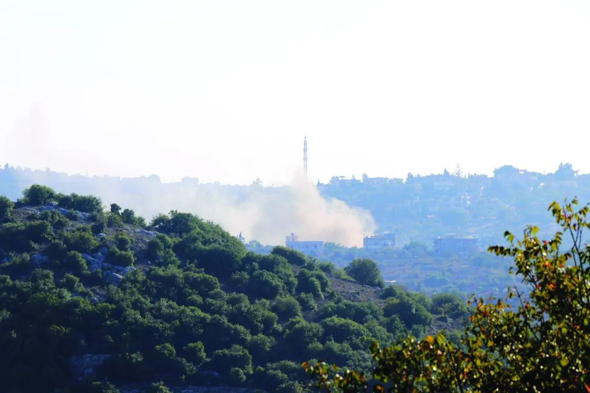 دخان يتصاعد في بلدة لبنانية حدودية نتيجة قصف إسرائيلي أمس (أ.ف.ب)
