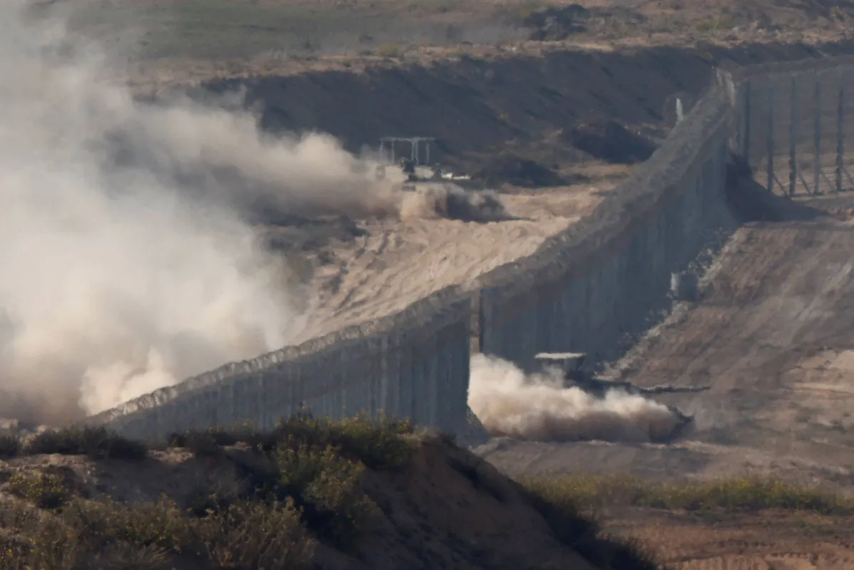 دبابات إسرائيلية تجتاز الحدود بين قطاع غزة وجنوب إسرائيل 5 نوفمبر 2023 (رويترز)
