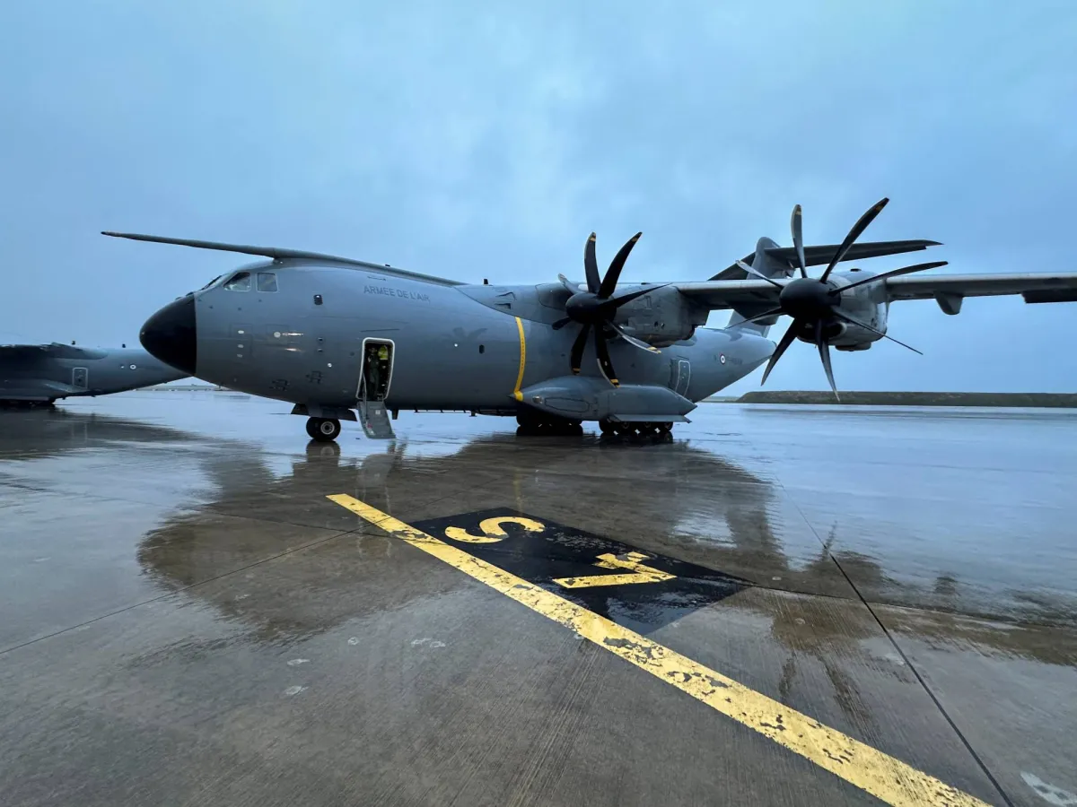 شوهدت طائرة عسكرية تابعة للقوات الجوية الفرنسية من طراز إيرباص A400M قبل إقلاعها لتقديم المساعدات الإنسانية لغزة، في قاعدة أورليانز الجوية، فرنسا، 4 نوفمبر 2023 (رويترز)