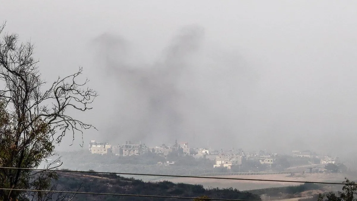 دخان يتصاعد من الجزء الشمالي بقطاع غزة نتيجة غارة جوية إسرائيلية في مكان غير معلوم بالقرب من الحدود (إ.ب.أ)