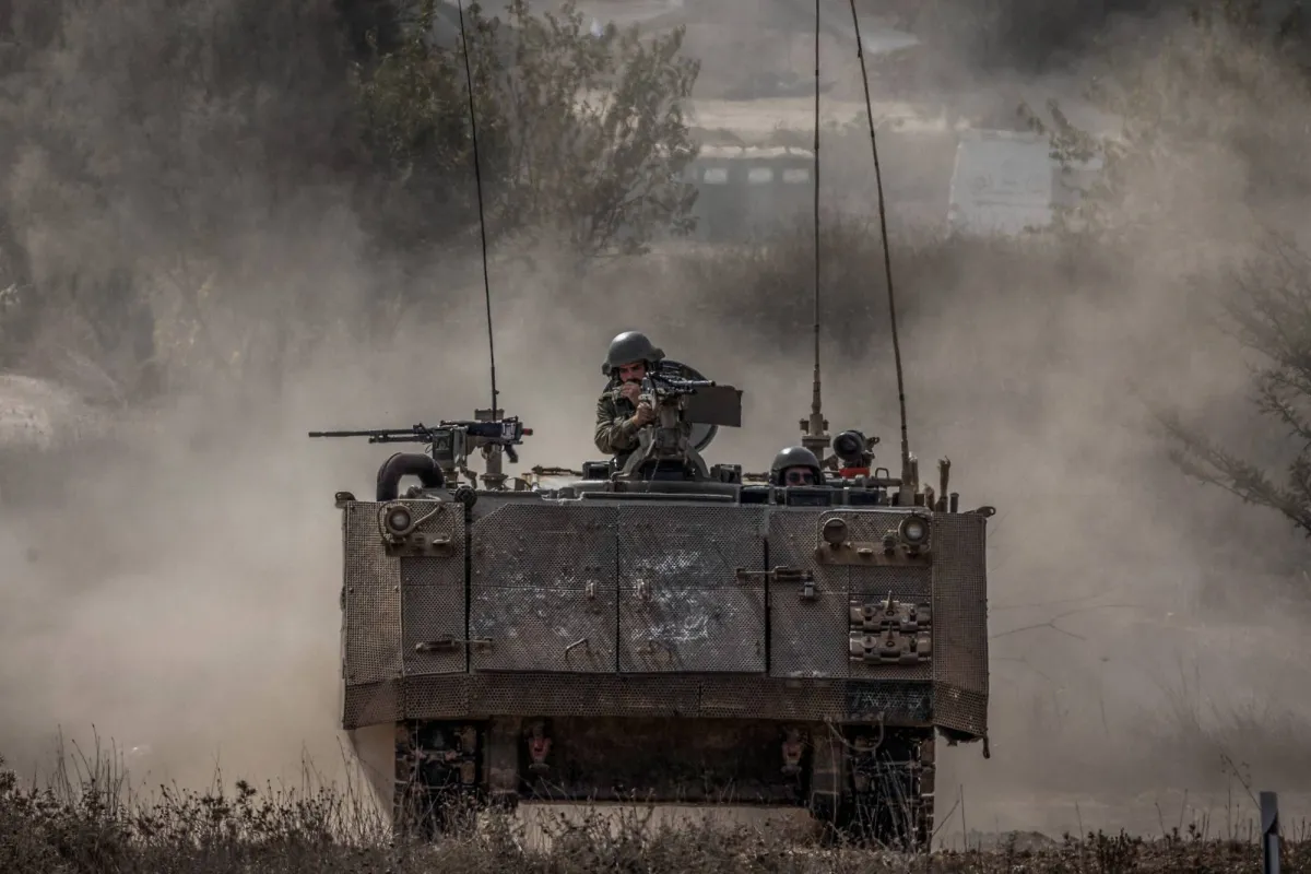 مدرعة إسرائيلية على الحدود بين غزة وإسرائيل (د.ب.أ)