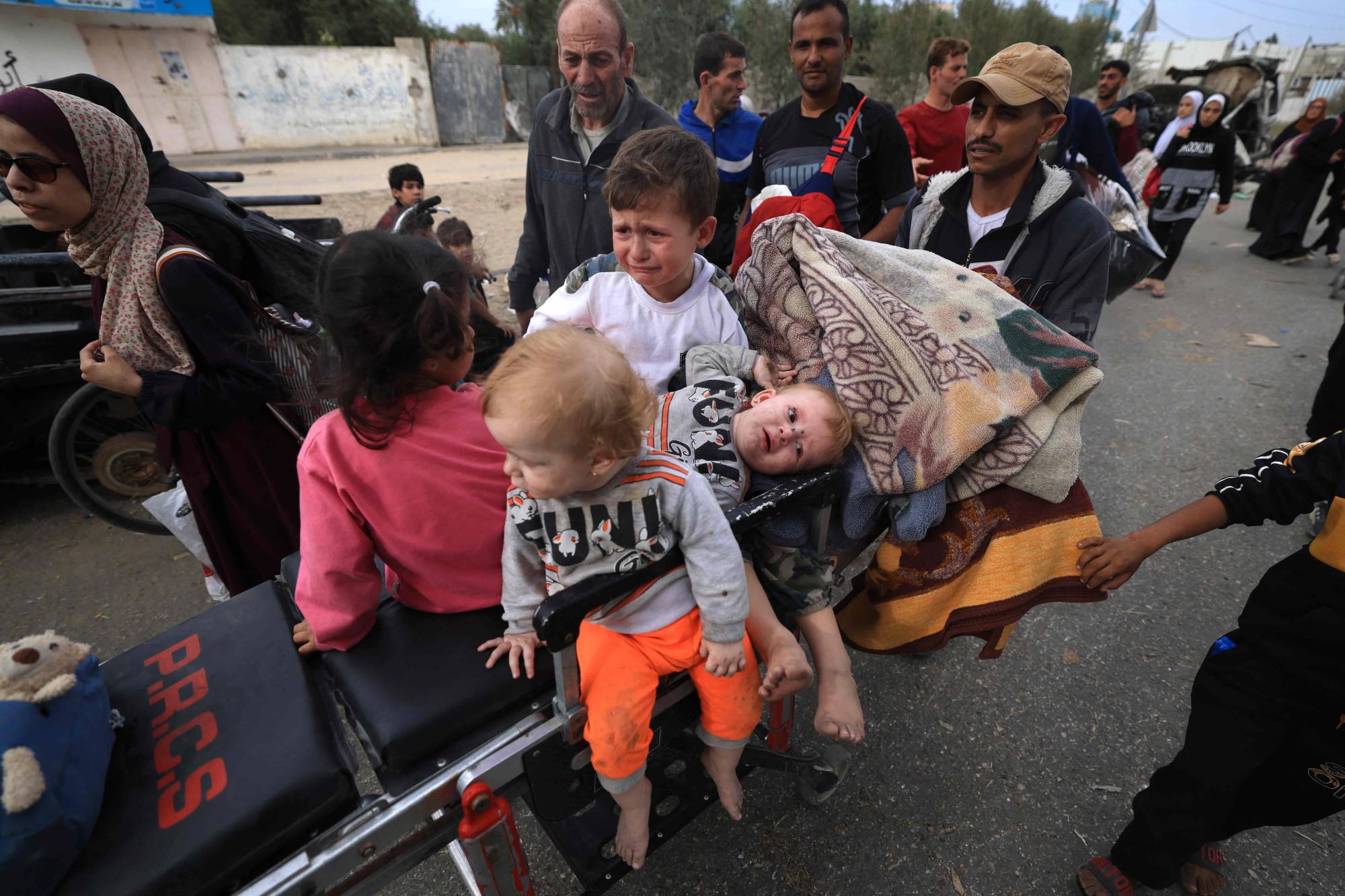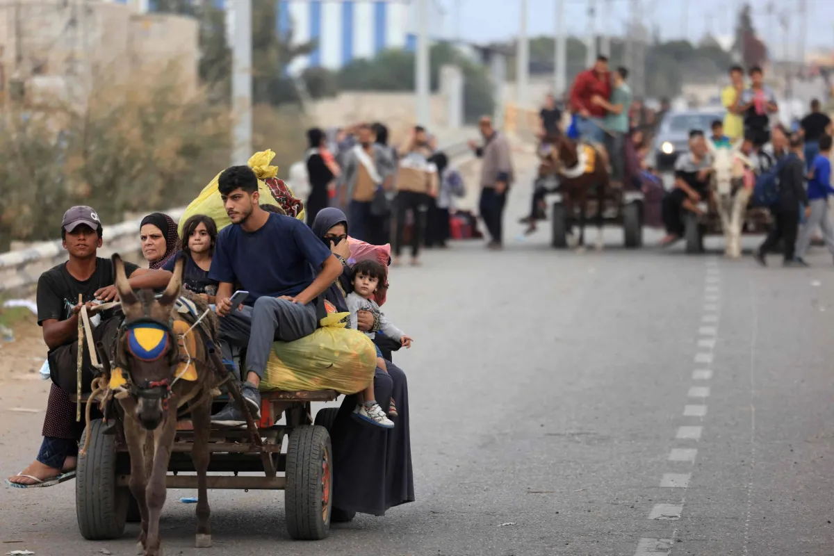 ويفرّ آلاف الفلسطينيين من القصف الإسرائيلي المكثّف على شمال القطاع عبر الطريق المؤدية إلى جنوبه. فهناك يتواصل مرور شاحنات، وسيارات، وعربات تجرها حمير، يتكدّس فيها نازحون، في حين يقوم آخرون برحلتهم من الشمال إلى الجنوب سيراً.