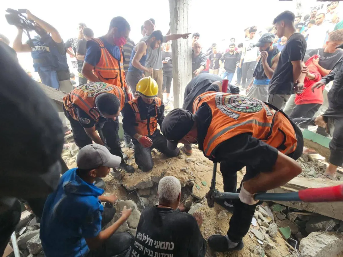 قوات الدفاع المدني تعمل على استخراج ضحايا قصف إسرائيلي على منزل في خان يونس بقطاع غزة (الداخلية الفلسطينية)