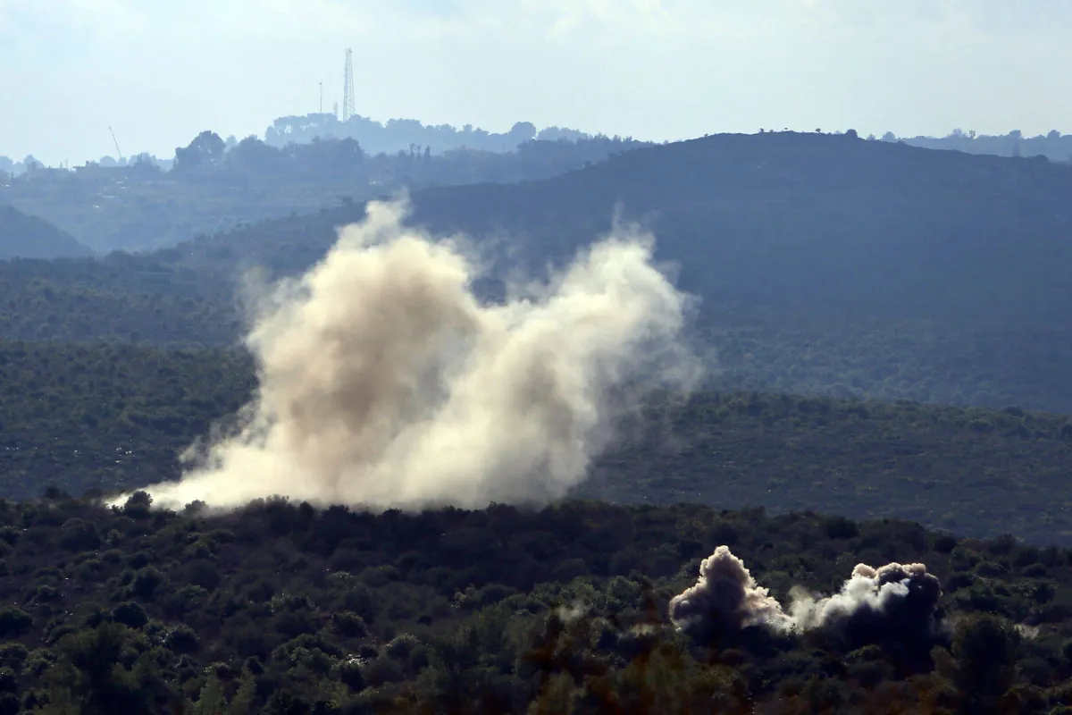 تصاعد الدخان نتيجة القصف الإسرائيلي قرب بلدة طير حرفا في جنوب لبنان (أ.ف.ب)