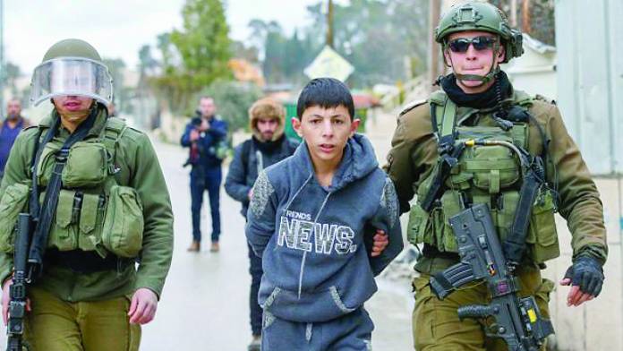 لحظة اعتقال طفل فلسطيني في الضفة (أ.ف.ب)