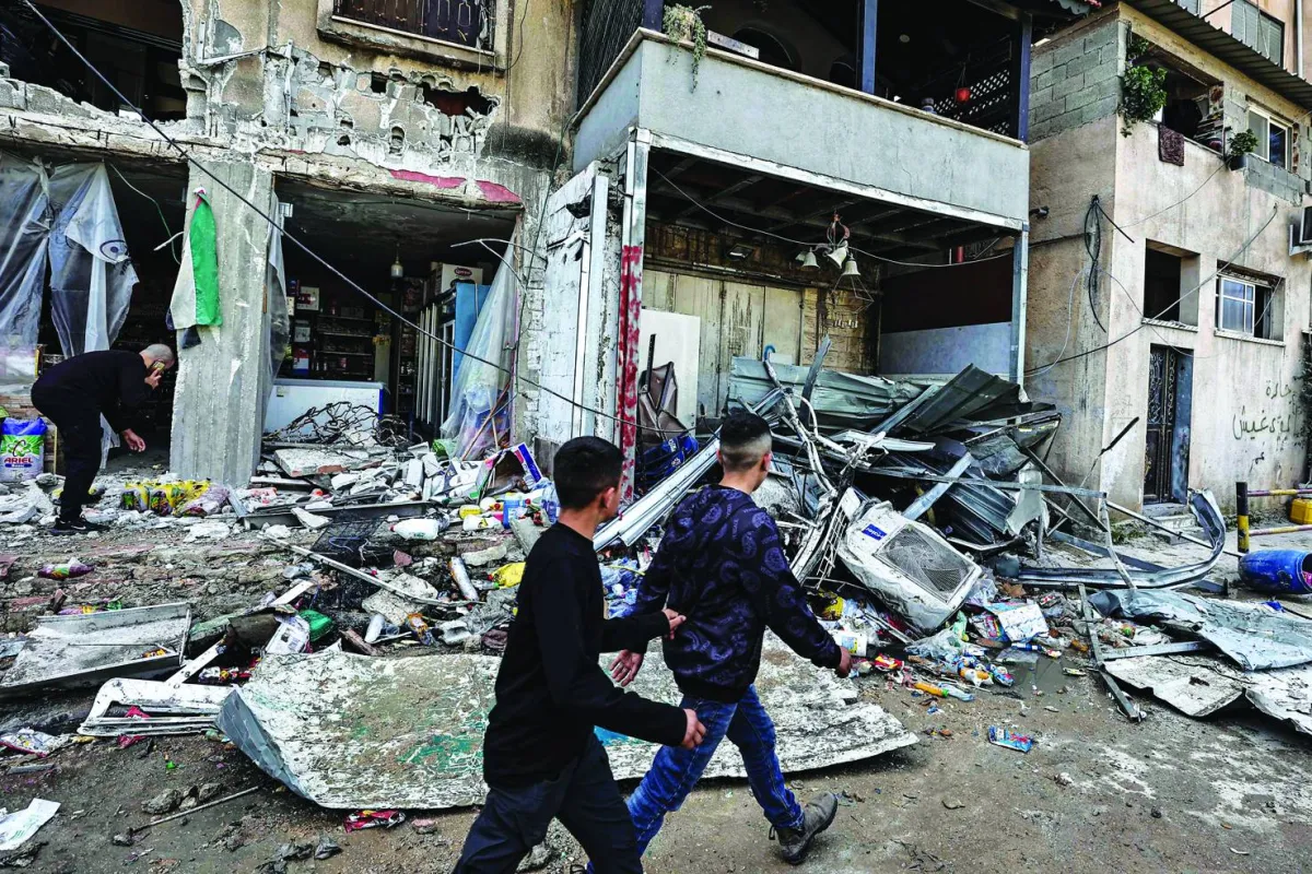تفقُّد الأضرار بعد اجتياح إسرائيلي لمخيم «نور شمس» قرب طولكرم شمال الضفة الغربية (أ.ف.ب)