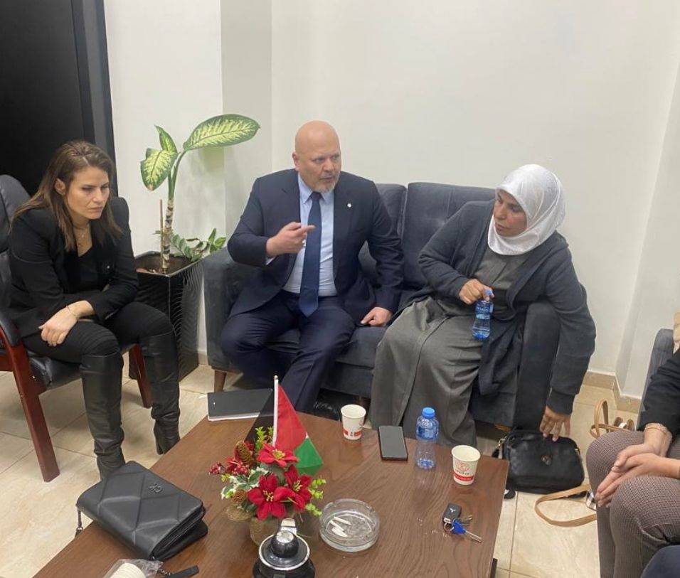 المدعي العام للمحكمة الجنائية الدولية كريم خان يلتقي عائلات ضحايا فلسطينيين خلال زيارته رام الله مطلع ديسمبر (كانون الأول) 2023 (حساب المحكمة الجنائية عبر منصة إكس)