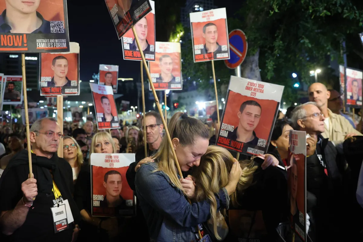 تظاهرة في تل أبيب تطالب رئيس الوزراء الإسرائيلي بنيامين نتنياهو بالعمل على تحرير المحتجزين في غزة (إ.ب.أ)