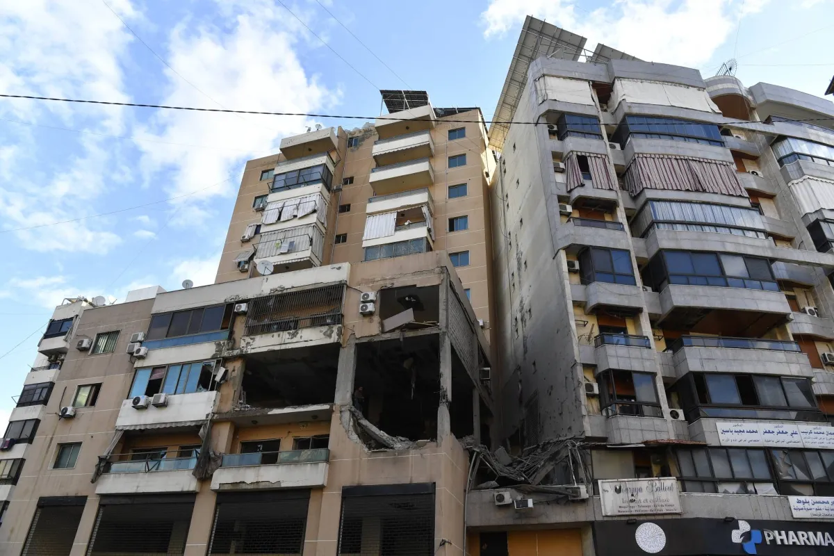 وتحيط بالمبنى متاجر ومبانٍ سكنية وعيادات. وبحسب «الوكالة الوطنية للإعلام» الرسمية، كان يستضيف لدى وقوع الضربة، اجتماعاً لتنظيمات فلسطينية.