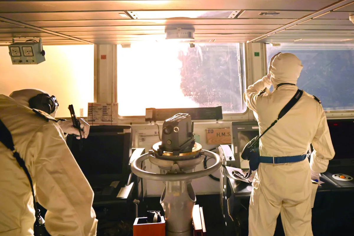 صورة وزعتها وزارة الدفاع البريطانية أمس تُظهر عملية إطلاق صواريخ في البحر الأحمر من على متن المدمرة البريطانية «إتش إم إس دايموند» (أ.ب)