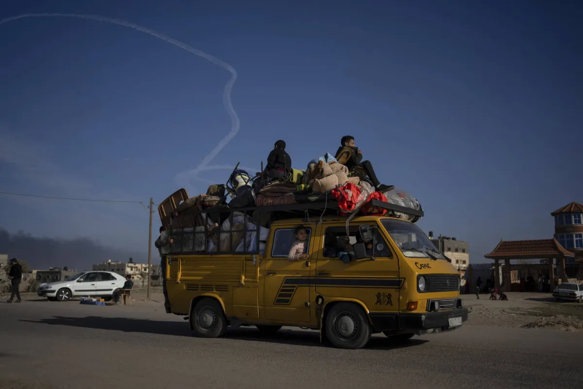 فلسطينيون يفرون من خان يونس من الهجوم البري والجوي الإسرائيلي على قطاع غزة يصلون إلى رفح جنوب غزة (أ.ب)
