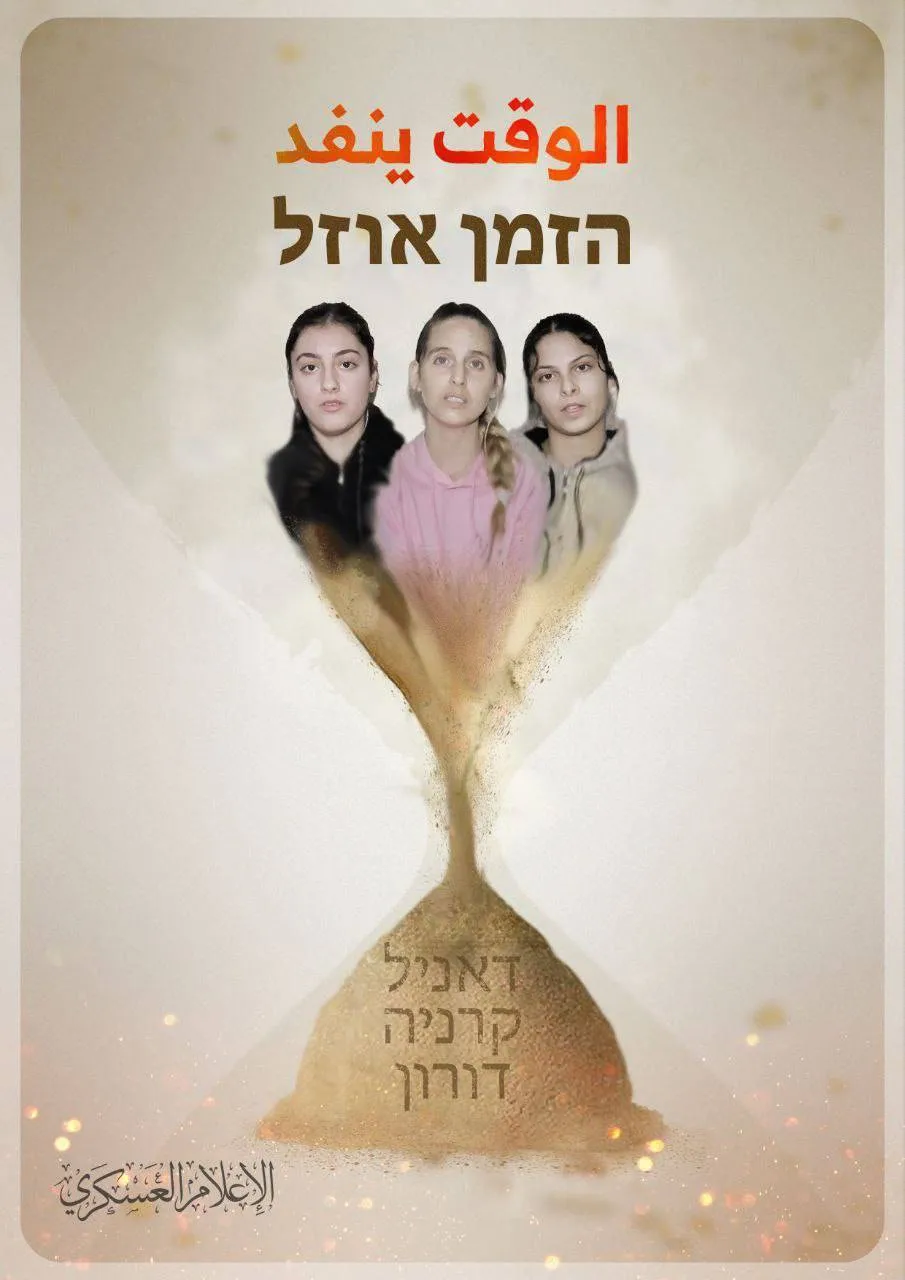 بثت حركة «حماس»، اليوم (الجمعة)، على «تلغرام» مقطعاً مصوراً ظهرت فيه ثلاث إسرائيليات محتجزات في قطاع غزة، قدمت اثنتان منهنّ نفسَيهما على أنهما جنديتان.