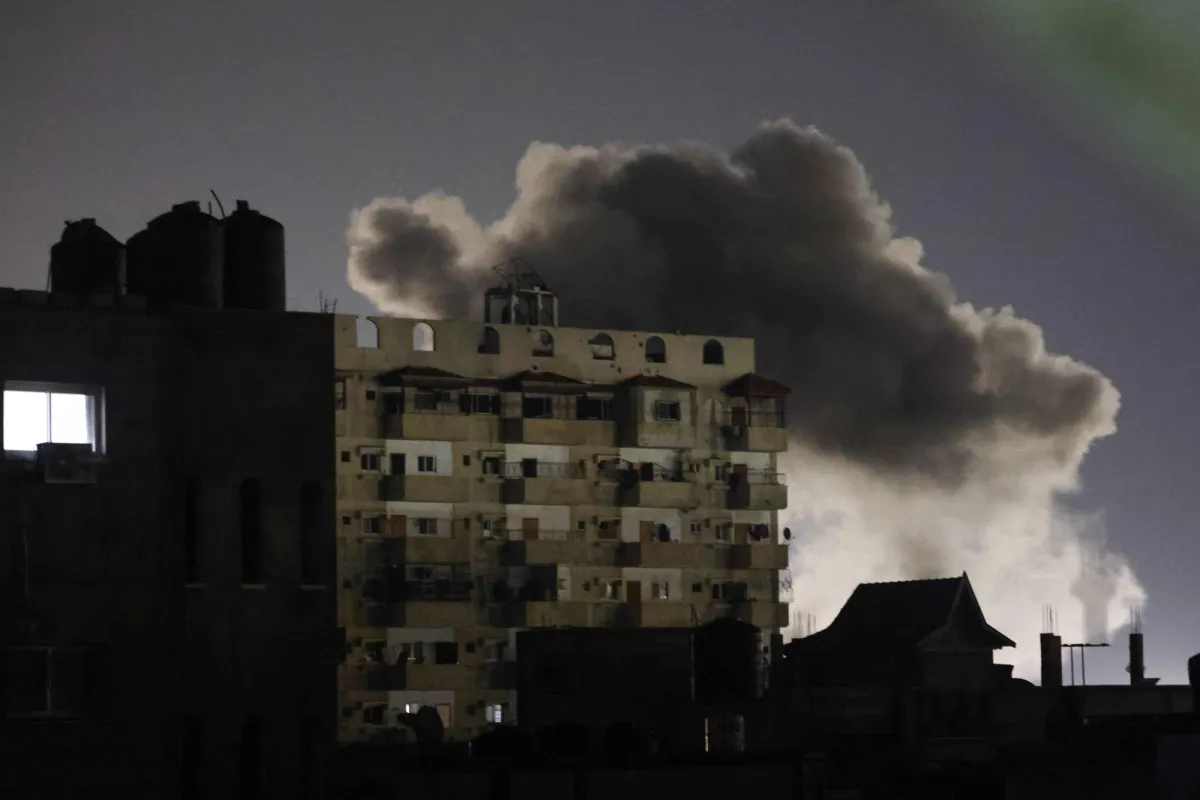الدخان يتصاعد فوق مدينة رفح بعد قصف إسرائيلي (أ.ف.ب)
