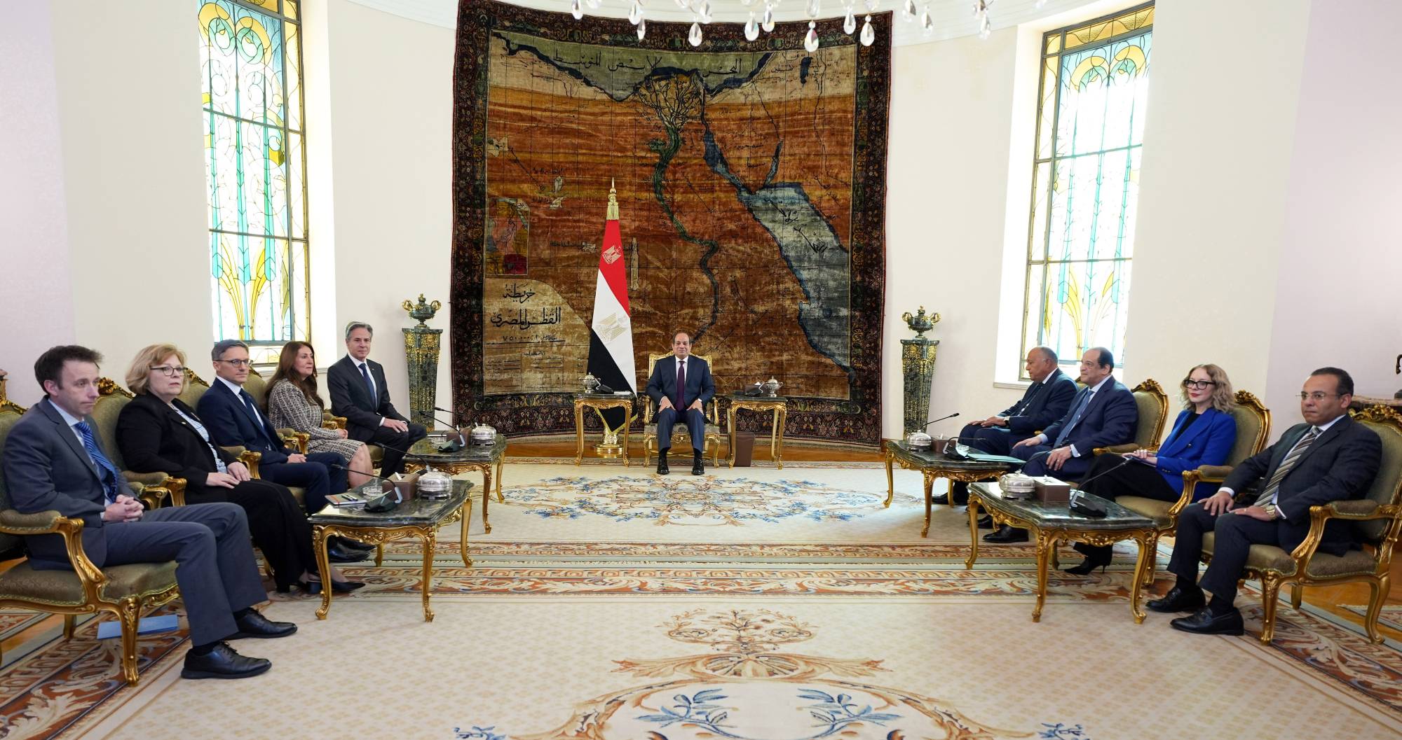 جاء ذلك خلال استقبال السيسي، اليوم، وزير الخارجية الأميركي أنتوني بلينكن والوفد المرافق له، وذلك بحضور سامح شكري وزير الخارجية، واللواء عباس كامل رئيس المخابرات العامة، وفق المتحدث باسم الرئاسة أحمد فهمي.