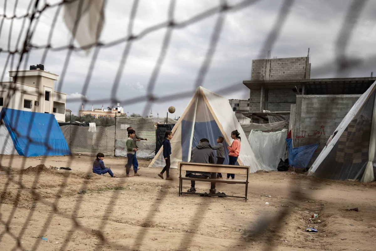 نازحون فلسطينيون في مخيم برفح جنوب قطاع غزة (إ.ب.أ)