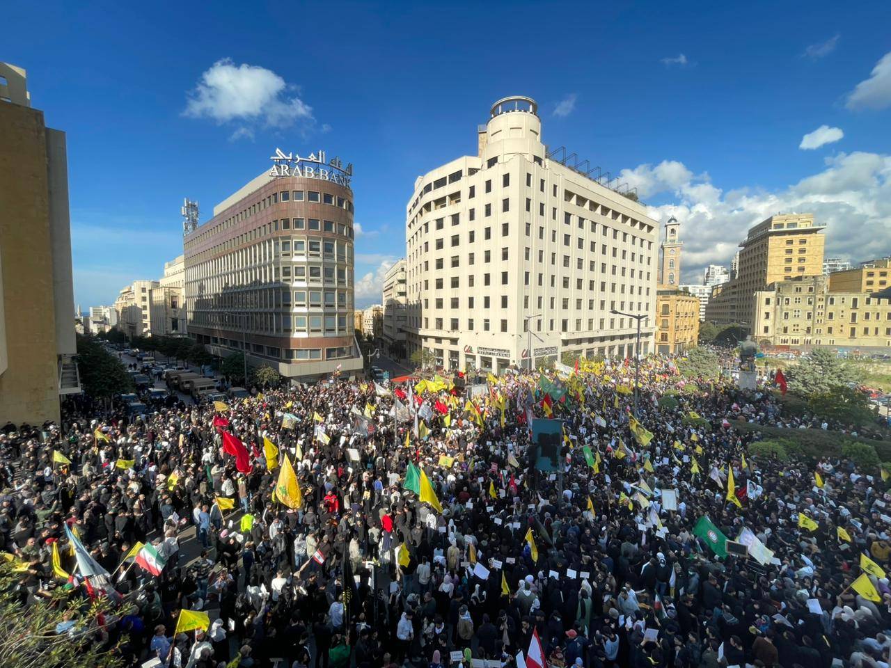 المئات من أنصار «حزب الله» يشاركون في اعتصام ضد الحكومة في وسط بيروت (متداول)