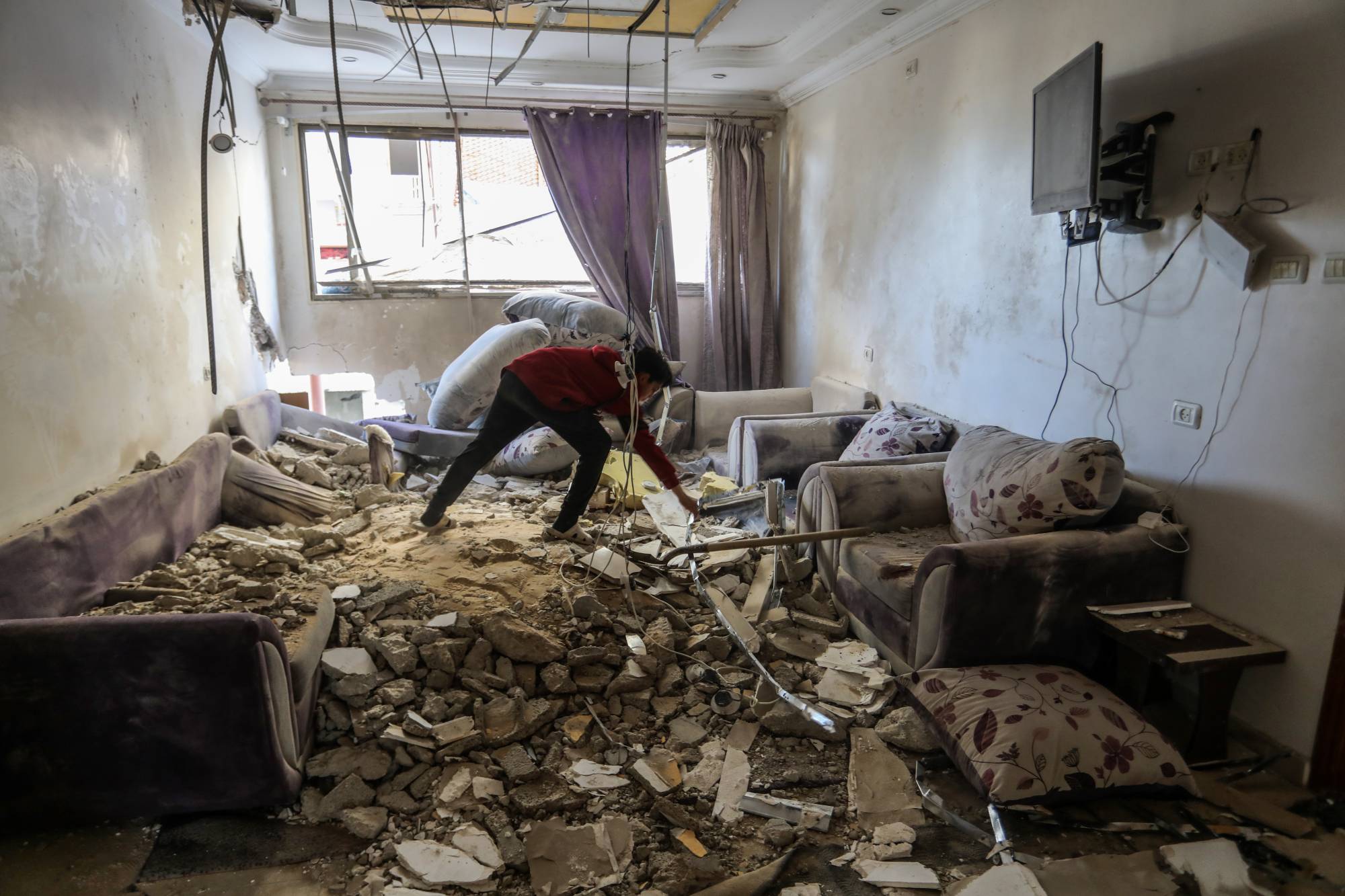 وفي بلدة حناوية، يشير نائب رئيس البلدية مصطفى بزُّون إلى أبنية سكنية مدمرة ومحال متضررة جراء الغارات.