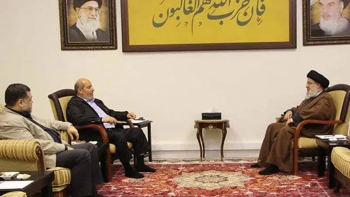 التقى الأمين العام لـ«حزب الله»، حسن نصر الله (الثلاثاء)، وفداً قيادياً من حركة «حماس» برئاسة خليل الحية، نائب رئيس الحركة في قطاع غزة، المكلف من قبلها عمليات التفاوض. وأعلن «حزب الله» أنه «جرى خلال اللقاء استعراض آخر الأوضاع والتطورات على المستوى الميداني في قطاع غزة والضفة الغربية وجبهات الإسناد المتعدّدة»، لافتاً في بيان إلى أنه تم التداول بـ«مجريات المفاوضات القائمة من أجل التوصّل إلى وقف العدوان على غزة، وتحقيق شروط المقاومة التي تخدم القضية الفلسطينية والشعب الفلسطيني».