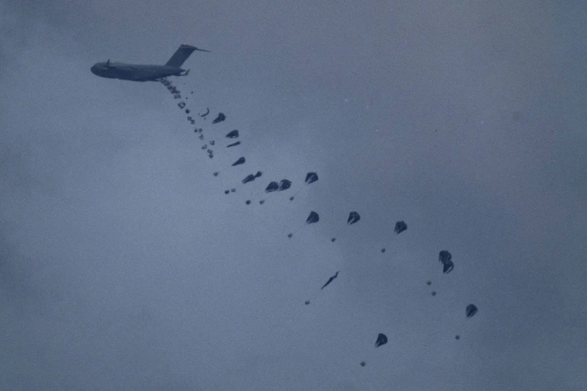 طائرة تسقط مساعدات إنسانية فوق غزة في شمال القطاع (أ.ب)