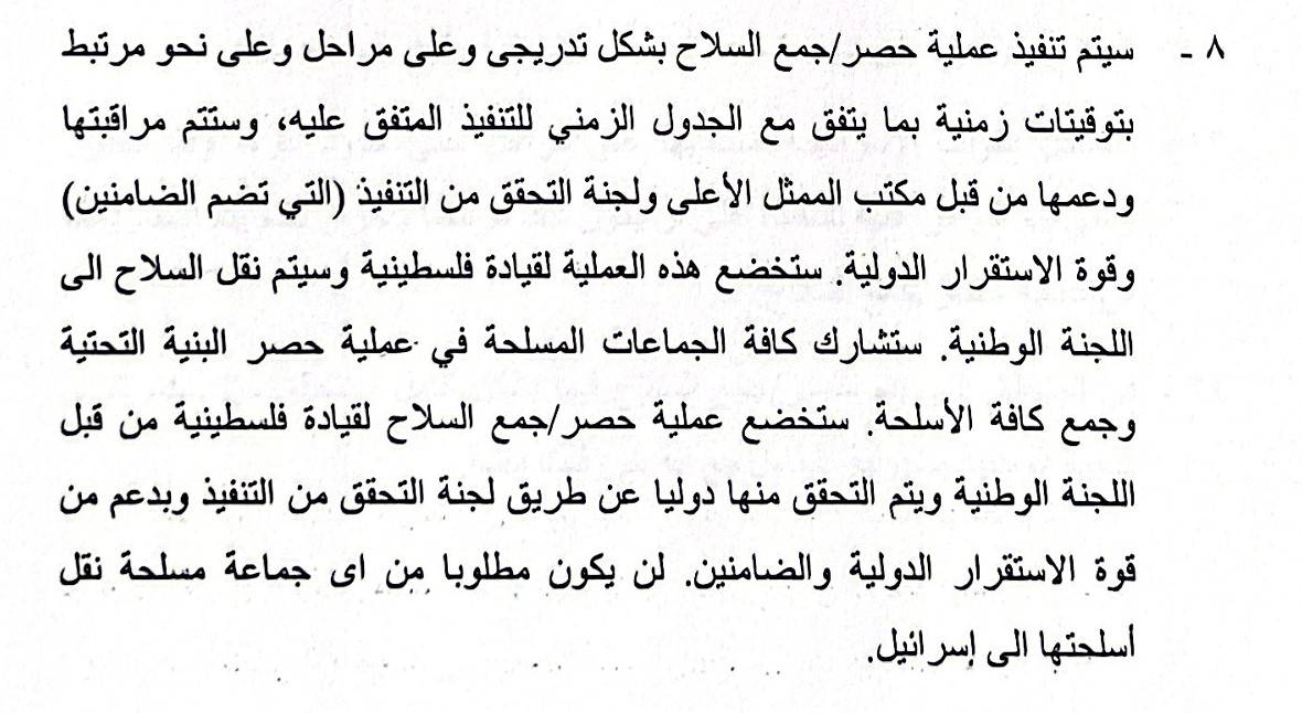 ويخشى الرقب أن «تعتبر إسرائيل هذا الموقف بمثابة رفض لتنفيذ خطة ترمب»، مضيفاً أنه «من الأفضل أن تعلن الفصائل الفلسطينية جاهزيتها لنزع السلاح ثم تترك التفاصيل للنقاش لاحقاً».