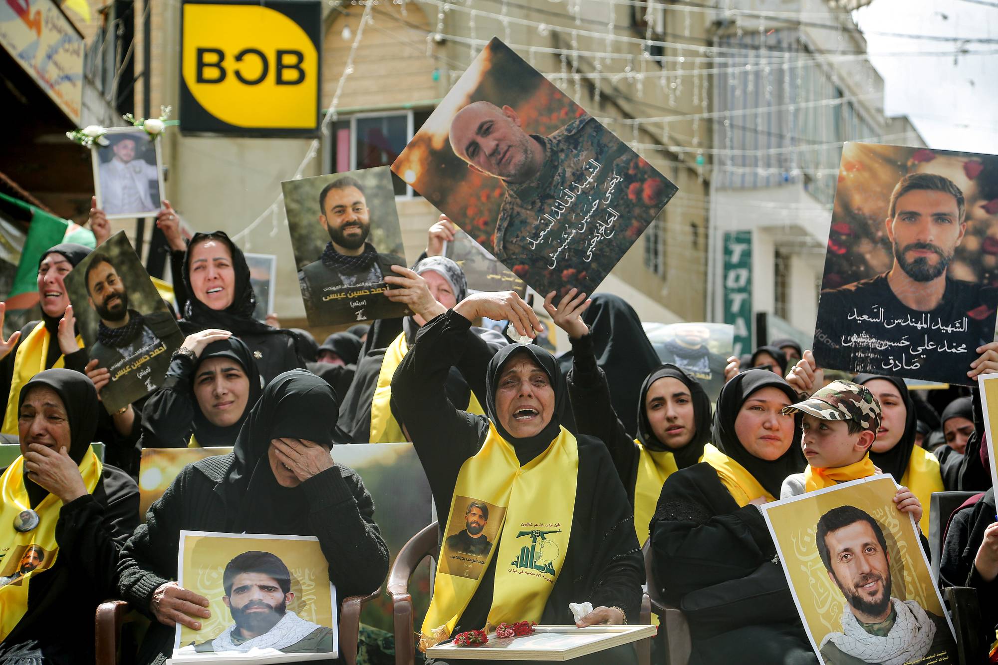 خلال تشييع عناصر في «حزب الله» قتلوا خلال المواجهات مع الجيش الإسرائيلي (د.ب.أ)