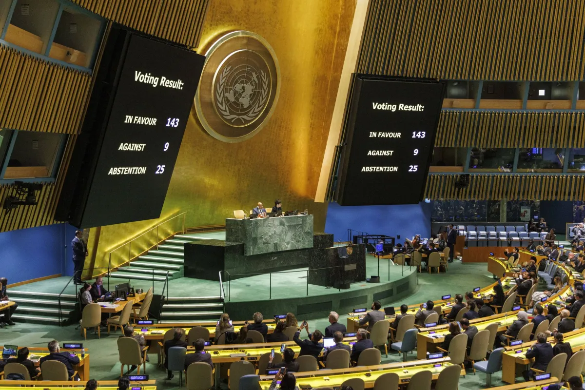 وتُعدّ هذه الخطوة «رمزية»، لكنها أثارت غضب كل من إسرائيل والولايات المتحدة. واعترضت 9 دول فقط، وامتنعت 25 دولة عن التصويت من الدول الـ193 الأعضاء في الجمعية العامة.