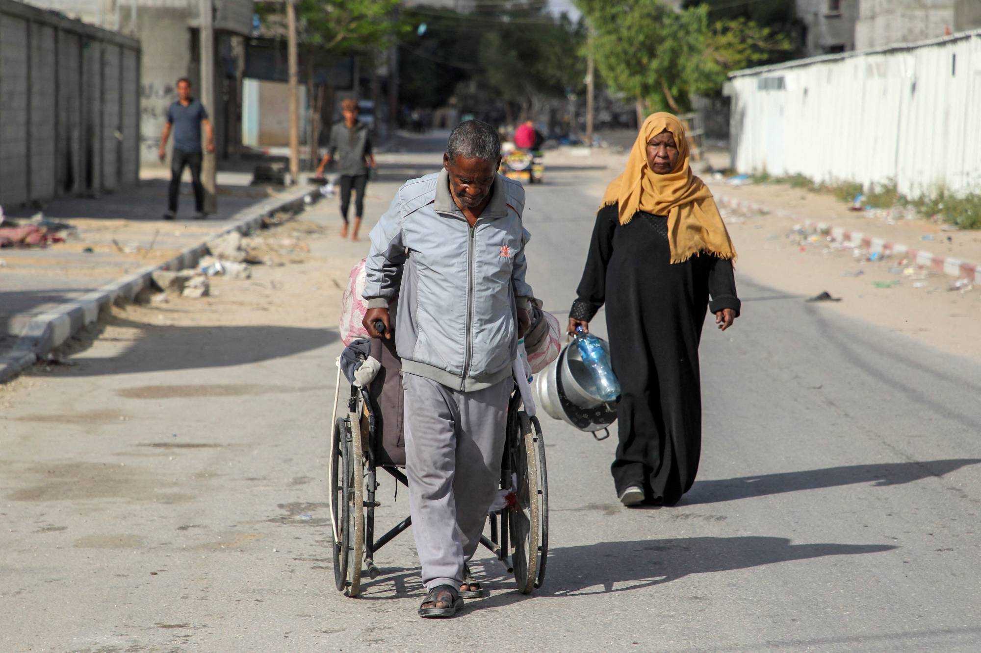 وكان عشرات الأشخاص بينهم نساء وأطفال ينتظرون في الشوارع أمام منازلهم قبل ترك المدينة الواقعة في أقصى جنوب قطاع غزة.