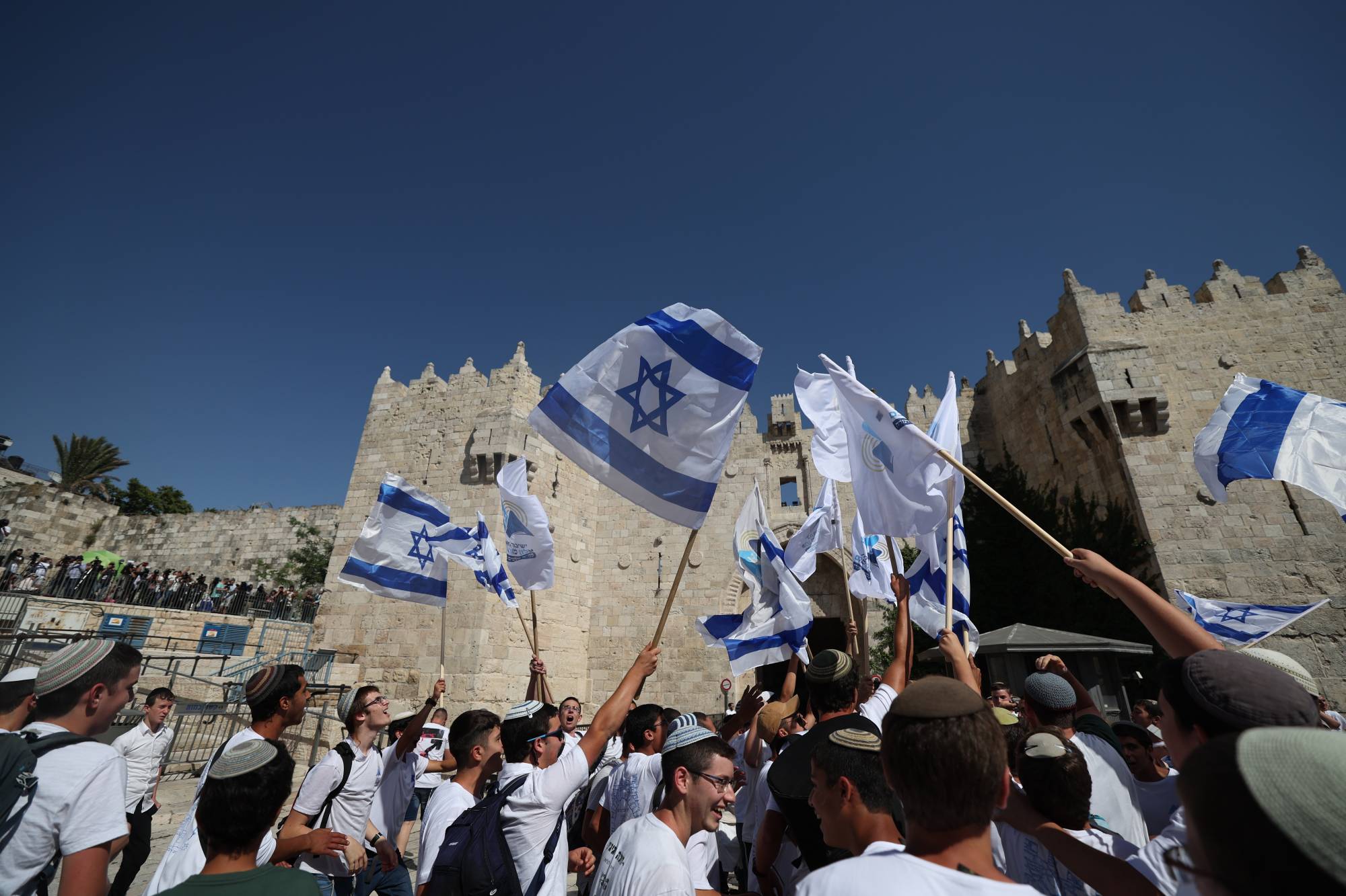 وصباح (الأربعاء) قبل مسيرة العلم، احتشد المراهقون اليهود في الشوارع الضيقة في البلدة القديمة، وهم ينشدون المزامير، ويضايقون أصحاب المتاجر خلال إغلاقهم في وقت مبكر، قبل أن يهاجموا لاحقاً صحافيين. وذكرت وسائل الإعلام أن مراسل صحيفة «هآرتس»، نير حسون، تعرّض لهجوم من جانب يهود يمينيين في أثناء قيامه بتغطية الأحداث في البلدة القديمة قبل المسيرة. ووفقاً لصحيفة «هآرتس»، فقد طرح عدد من المهاجمين حسون أرضاً، وركلوه حتى تدخل أفراد الشرطة.