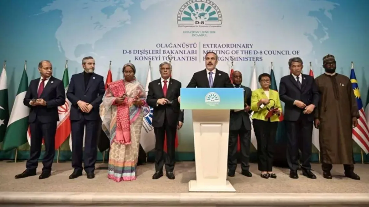 تعهد وزراء خارجية مجموعة الدول الثماني الإسلامية بحشد جميع الوسائل المتاحة لضمان وقف فوري لإطلاق النار في قطاع غزة وإيصال المساعدات الإنسانية إلى سكانه.