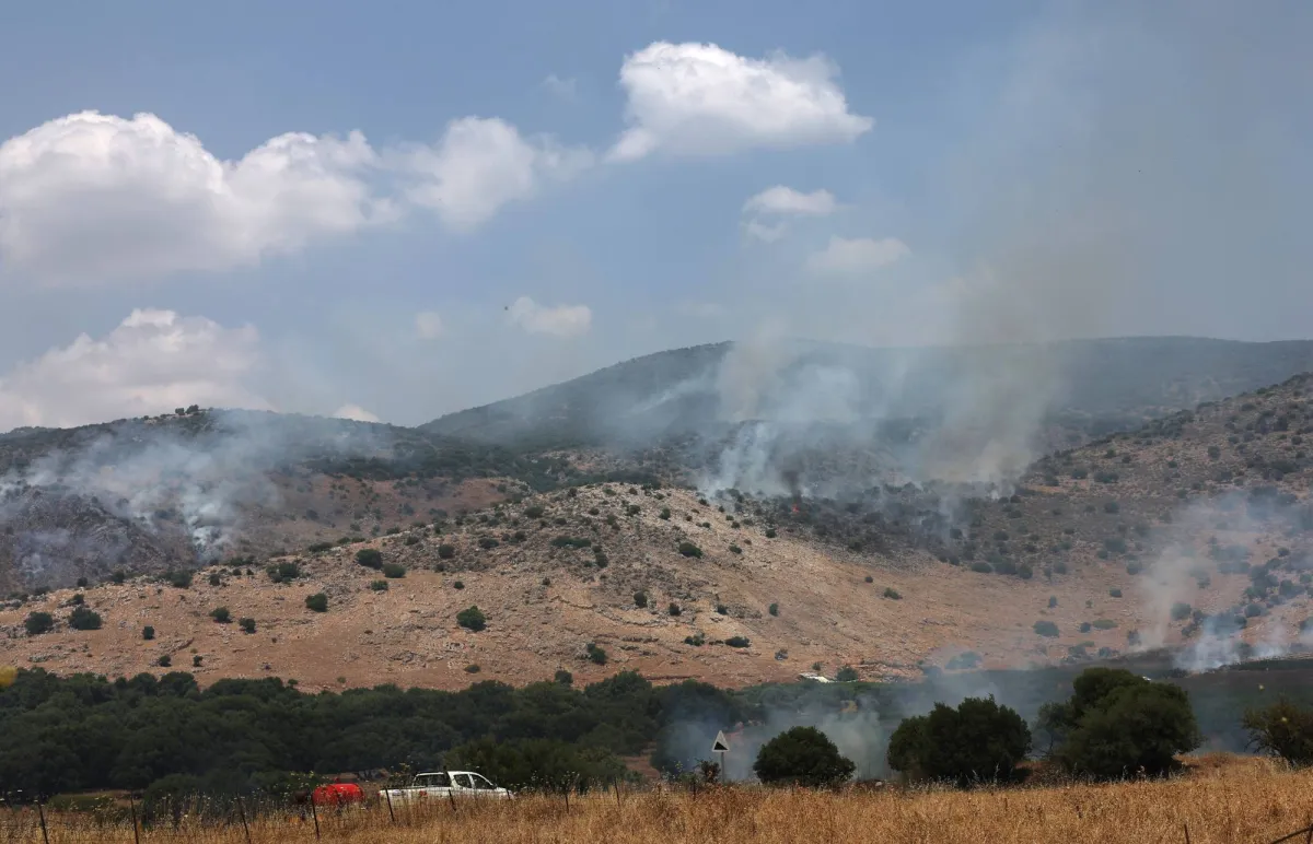الدخان المتصاعد من الحرائق في أعقاب ضربات من لبنان بالقرب من بانياس (إ.ب.أ)