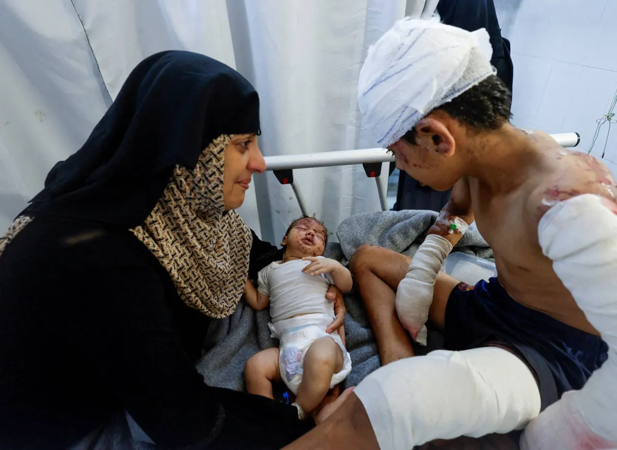 وجلست امرأة إلى جانب سريره في المستشفى وهي تحتضن شقيقه الرضيع. أما والده أحمد قمر وشقيق آخر فيرقدان في سريرين بالمستشفى بعد الغارة الجوية التي هشّمت النوافذ وملأت غرفة المعيشة بالغبار.