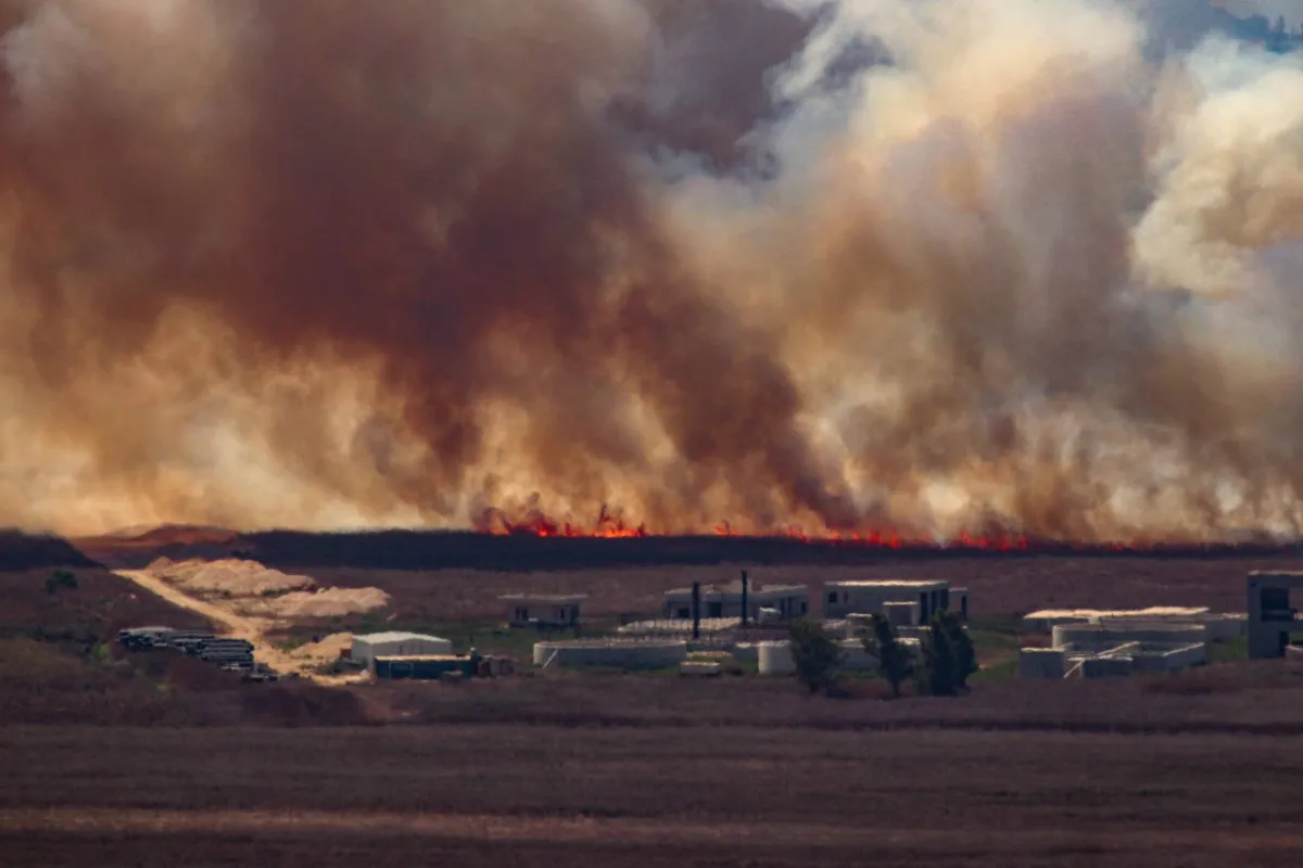 النيران تشتعل في حقول زراعية بسهل مرجعيون الحدودي مع إسرائيل في جنوب لبنان جراء قصف إسرائيلي (أ.ف.ب)