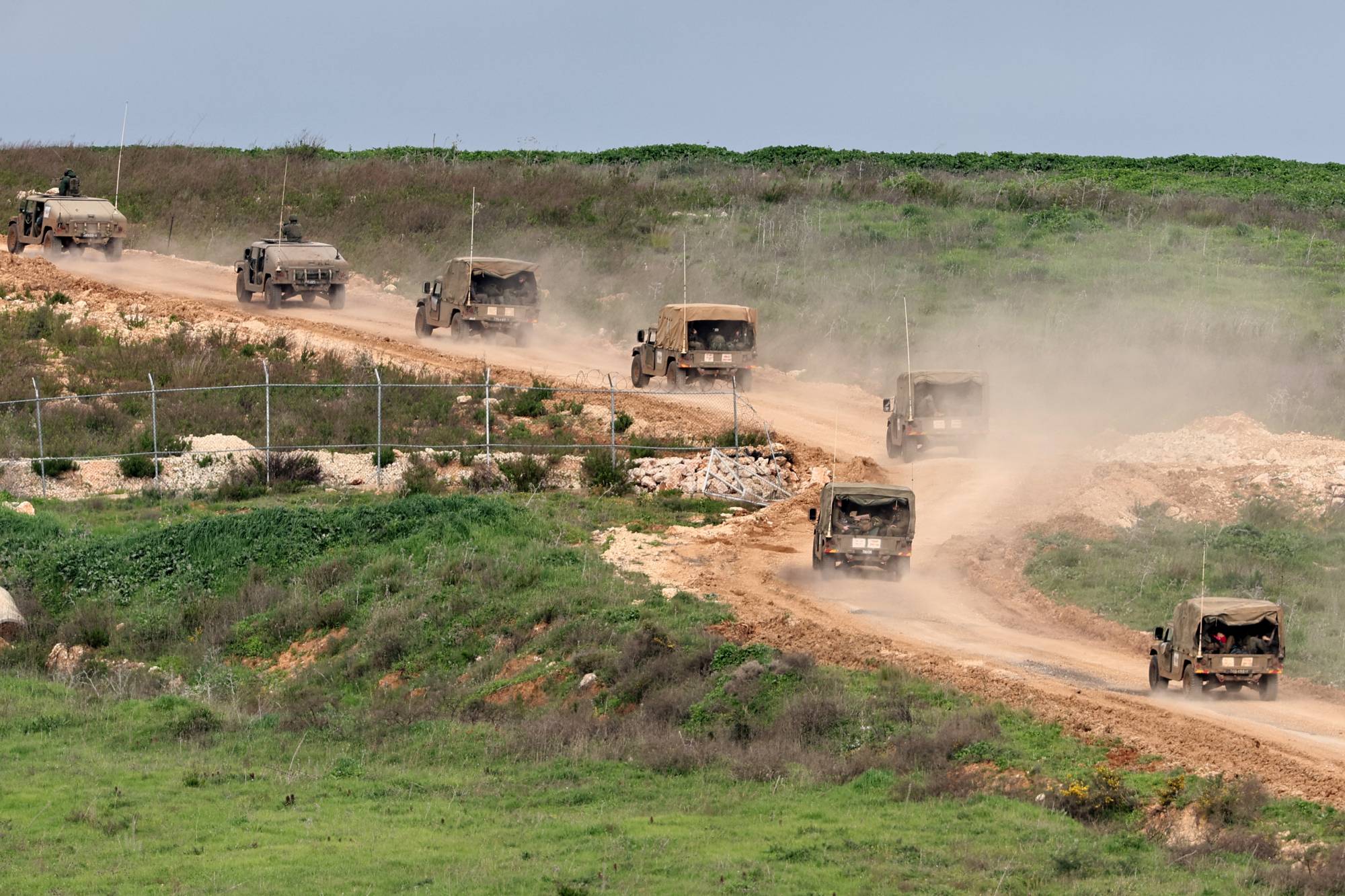سيارة جيب عسكرية إسرائيلية تتجه نحو الحدود مع لبنان وسط تصاعد الأعمال العدائية بين إسرائيل و«حزب الله» (رويترز)