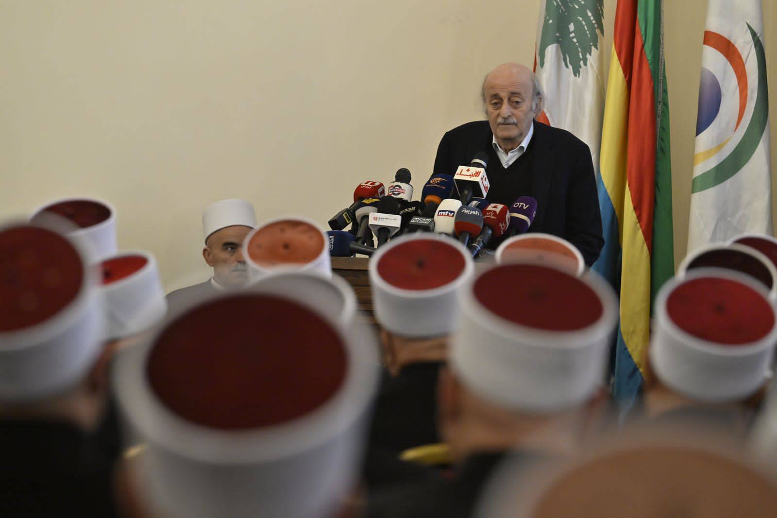 وبينما شدد على ضرورة اتخاذ الموقف الصحيح في هذه المرحلة، متحدثاً عن مشروع كبير لجر ضعفاء النفوس إلى حروب أهلية، قال جنبلاط: «الشيخ موفق طريف يدّعي أنه يمثل دروز المنطقة بالتعاون مع الصهيوني، وهذا أمر غير صحيح».